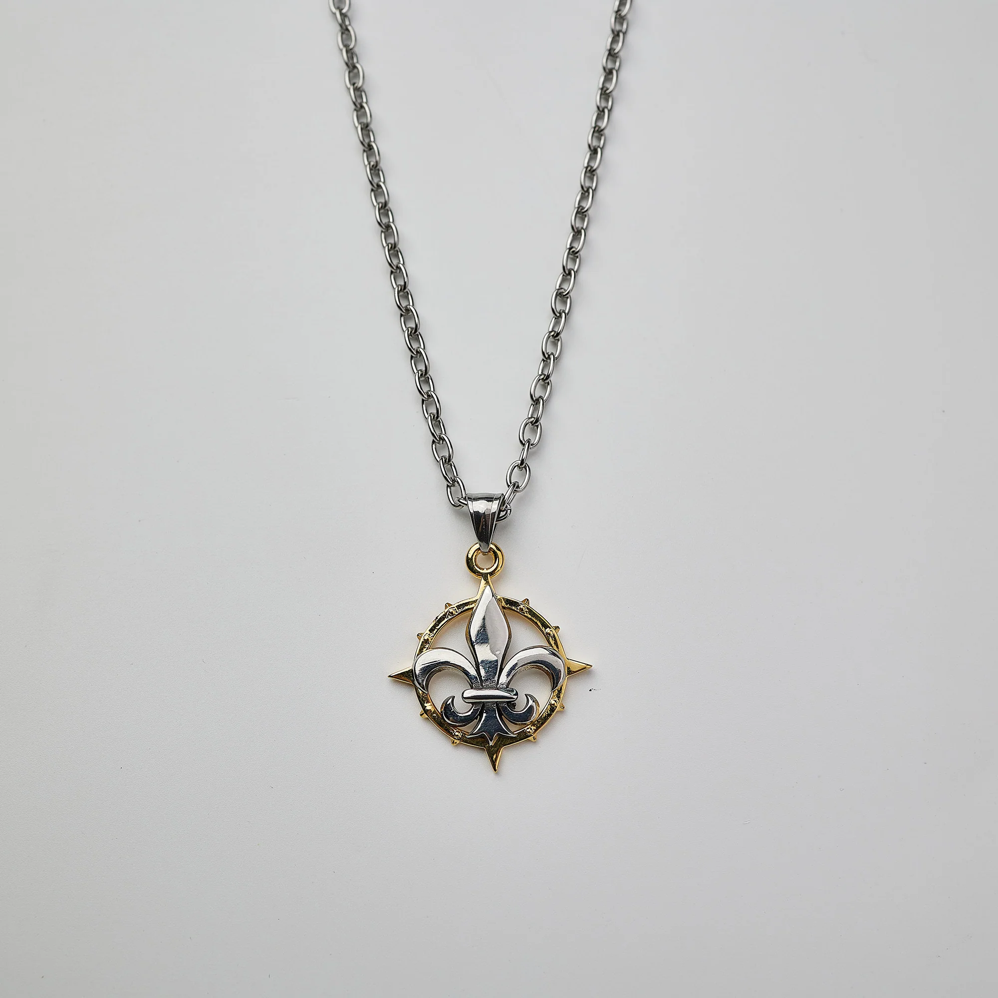 This Necklace is cast in Brass and Steel ,finished in electroplated gold, includes aĀ steel chain thats 600mm long.